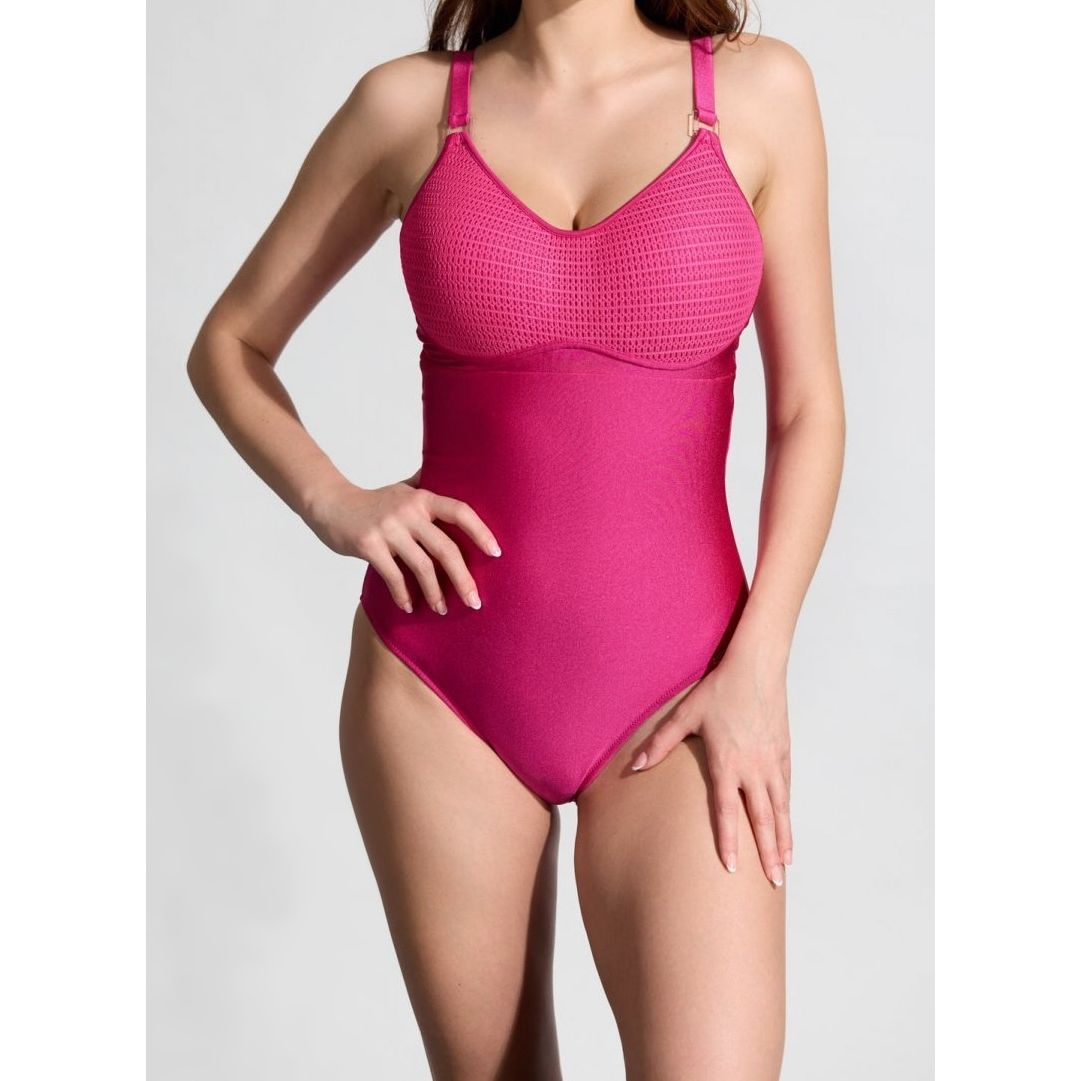 Jednodílné dámské plavky ComfyBra jsou elegantní a pohodlný model s integrovanou měkce vyztuženou podprsenkou bez kostic, která poskytuje pevnou oporu a přirozený tvar. Mají tvarující přední díl, jenž opticky zeštíhluje, široká ramínka pro stabilitu a vyšší zadní díl pro volnost pohybu. Jsou ušité z kvalitní, odolné plavkoviny a díky promyšlenému střihu lichotí různým typům postavy, zejména těm, které ocení pohodlí, jistotu a decentně zeštíhlující efekt.