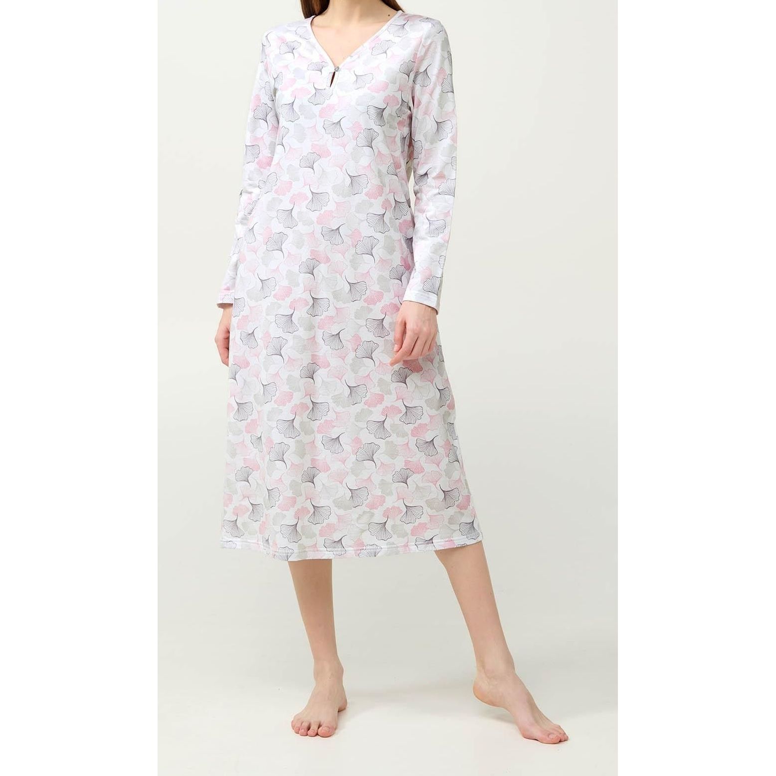 Bavlněná dámská noční košile s dlouhým rukávem