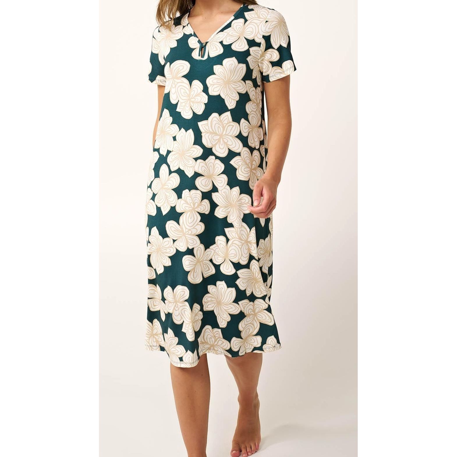 Dámská noční košile Vamp je lehká, jemná a mimořádně příjemná letní košile vyrobená z prémiového LENZING™ Tencel Modal Micro s příměsí elastanu. Tento materiál je známý svou hebkostí, prodyšností a elegantním splýváním, takže je ideální na teplejší období. Košile má krátký rukáv a kulatý výstřih, který působí čistě a ženským dojmem. Střih je volnější a pohodlný, aby neomezoval v pohybu a poskytoval maximální komfort při spánku i domácím odpočinku. Design zdobí jemný přírodní nebo květinový motiv, typický pro značku Vamp, který dodává svěží a romantický vzhled. Délka modelu sahá nad kolena, což zajišťuje lehkost a vzdušnost.