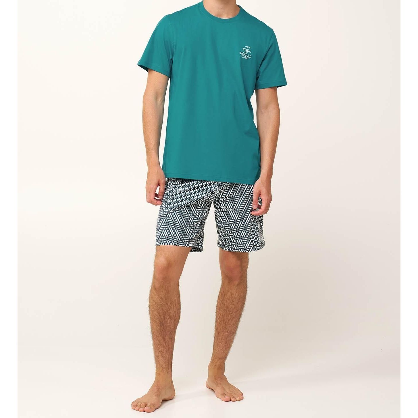 Pánské letní pyžamo Vamp je vyrobeno ze 100% lehké a prodyšné bavlny (Single Jersey) a nabízí maximální pohodlí v teplých dnech. Skládá se z trička s krátkým rukávem a kulatým výstřihem a pohodlných bermudových kraťasů, takže je ideální pro spánek i domácí relax během léta.
