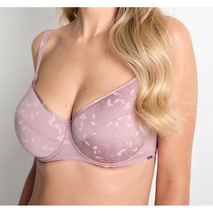 Podprsenka Triola je tence vyztužený model typu T‑Fit, který díky švu do T‑čka vytváří krásně kulatý a přirozený tvar prsou, má kostice pro pevnou oporu, hladký saténově lesklý úplet v odstínu dusty rose, takže se nerýsuje pod oblečením, a je proto ideální na každodenní nošení i pro větší velikosti, kde nabízí stabilitu, pohodlí a elegantní vzhled v jednom.